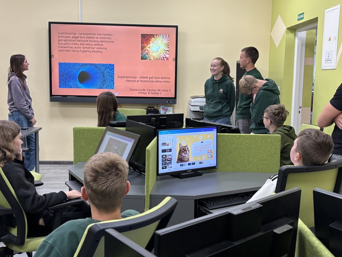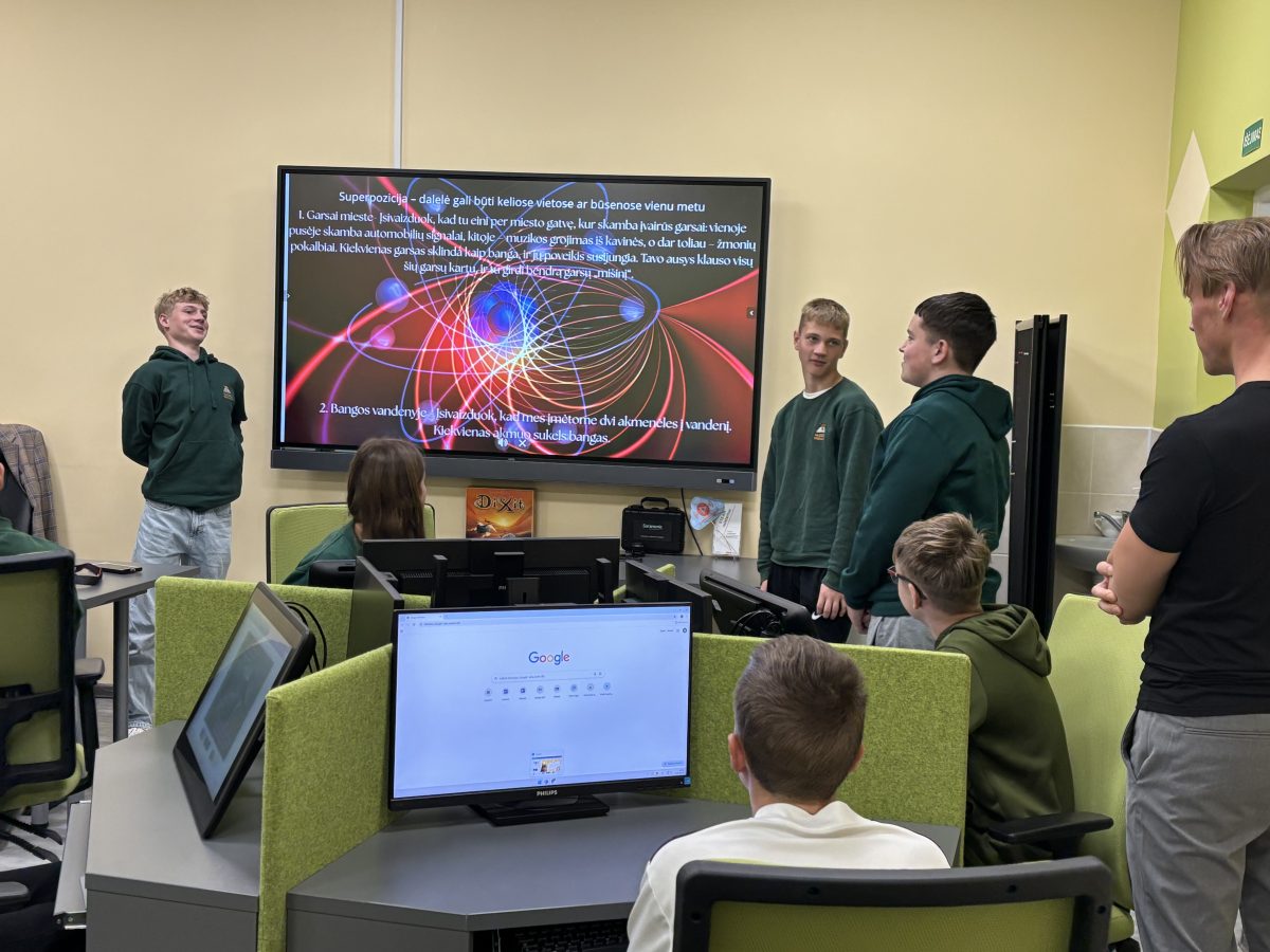 Šiandien, STEAM metodininko, lektoriaus Andriaus Birštono pagalba, mokiniai turėjo galimybę prisiminti ir pažvelgti kitaip į Izaoko Niutono dinamikos lygtį, Alberto Einšteino sukurtą specialiąją reliatyvumo teoriją, susipažinti su Ervino Šriodingerio lygtimi, kuri sujungia dalių ir bangų savybes. Aštuntokai nagrinėjo alternatyvius pasaulius pasitelkdami fotografiją, vaizdo redagavimą ir meninės saviraiškos priemones.