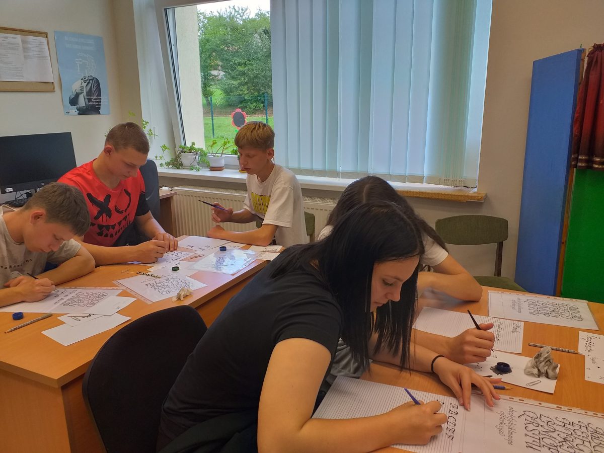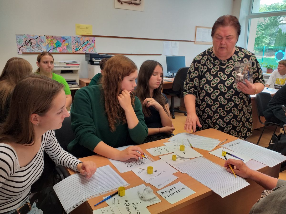 Rugsėjo 16 d. II gimnazijos klasės mokiniams Gražiškių miestelio bibliotekoje vyko netradicinė lietuvių kalbos ir literatūros pamoka. Kūrybinės edukacijos „Kaligrafijos menas“ užsiėmimą organizavo miestelio bibliotekininkė N. Dubickienė, jį vedė Vilkaviškio viešosios bibliotekos dailininkė Žydruolė Tumosaitė. Ji supažindino mokinius su kaligrafijos sąvoka, raidos istorija, naudingumu. Mokiniai, naudodami tušą, savo vardą ir pavardę pirmiausia užrašė sąvaržėle, po to mediniu smeigtuku, o daugiausiai laiko skyrė kaligrafinei rašybai – dailiam šriftui su ornamentais. Nė vienas dar nebuvo išbandęs rašymo plakatine plunksna. Tokiu būdu mokiniai mokėsi ir kantrybės, susikaupimo, dėmesingumo, savo asmenybės ugdymo bei žaismės.