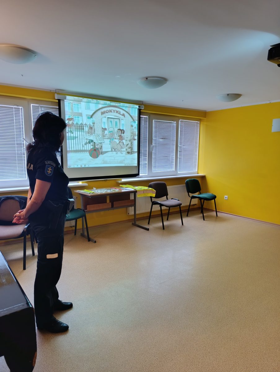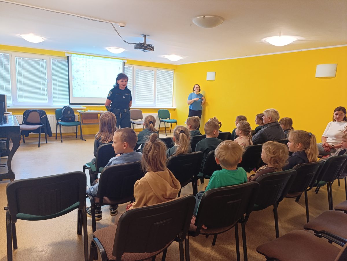 Rugsėjo 17 dieną mūsų gimnazijos pirmokai ir priešmokyklinio ugdymo grupės ugdytiniai dalyvavo ypatingoje pamokėlėje – juos aplankė policijos pareigūnė Vilija Grybauskienė. Pamokėlės metu vaikai mokėsi kaip taisyklingai pereiti gatvę, kaip saugiai elgtis gatvėje, kodėl svarbu segėti atšvaitą. Susitikimas buvo kupinas ne tik naudingų patarimų, bet ir smalsių mokinukų klausimų.