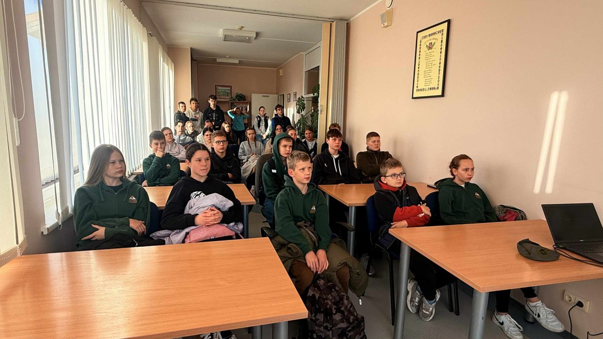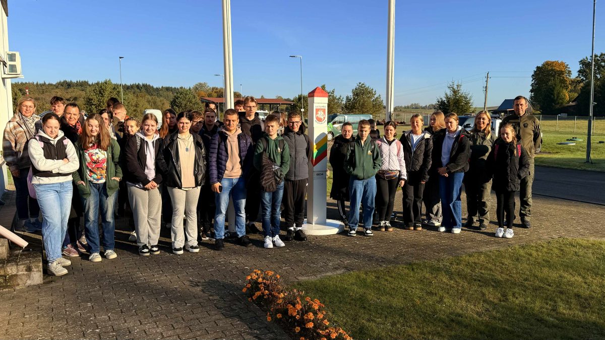 Gimnazija jau ne vienus metus bendradarbiauja su Pagėgių pasienio rinktinės bendruomene, todėl mokiniai kasmet turi galimybę apsilankyti Vištyčio užkardoje. Mus pakvietė pasienio rinktinės specialistė Kristina Minsevičiūte. Ji pristatė pasieniečio profesiją, parodė, kaip pareigūnai stebi per vaizdo kameras rodomus vaizdus.