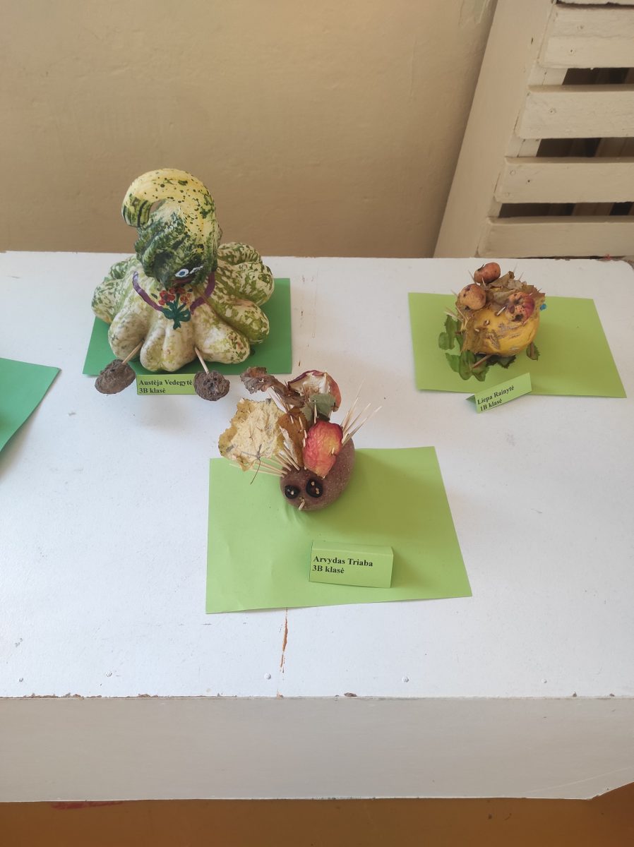Spalvingas ruduo į mokyklą atnešė ne tik auksinių lapų šnarėjimą, bet ir gausybę kūrybinių idėjų. Pradinių klasių mokiniai surengė parodą „Dėdės Derliaus dovanos 2025“, kurioje pristatė savo išradingai sukurtus darbelius iš gamtinių medžiagų – vaisių, daržovių, gėlių, lapų, kaštonų ir kankorėžių. Kiekvienas kūrinys – tai mažųjų rankomis sukurta pasaka apie rudenį, jo spalvas, kvapus ir gamtos dosnumą.