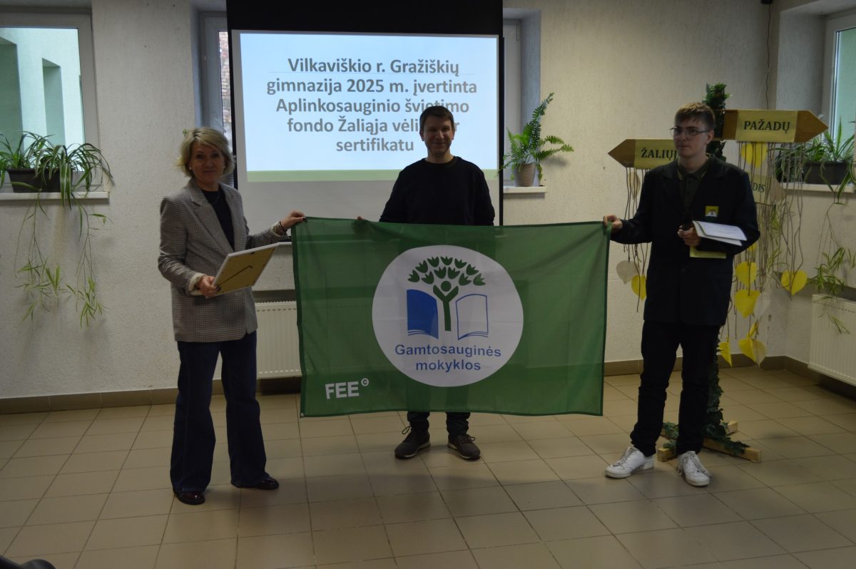 2025 m. spalio 31 d. Vilkaviškio rajono Gražiškių gimnazijai buvo iškilmingai įteikta Aplinkosauginio švietimo fondo Žalioji vėliava ir sertifikatas, kuriuos mokyklai įteikė Lietuvos Žaliųjų judėjimo vadovas, Gamtosauginių mokyklų programos koordinatorius Renaldas Rimavičius. Šis garbingas apdovanojimas skiriamas mokykloms, aktyviai dalyvaujančioms Tarptautinėje Gamtosauginių mokyklų programoje ir nuosekliai puoselėjančioms aplinkosaugos, atsakomybės bei tvarumo vertybes.