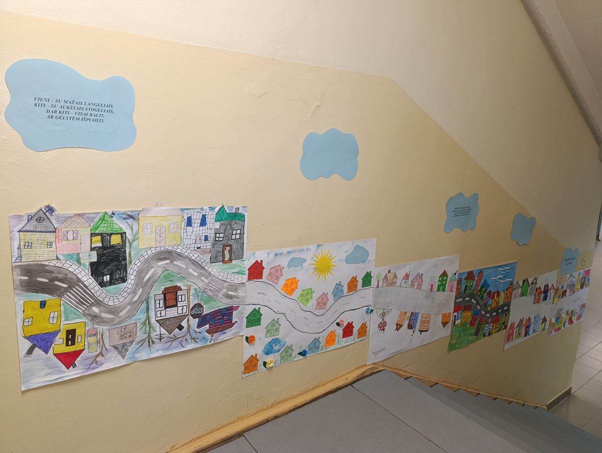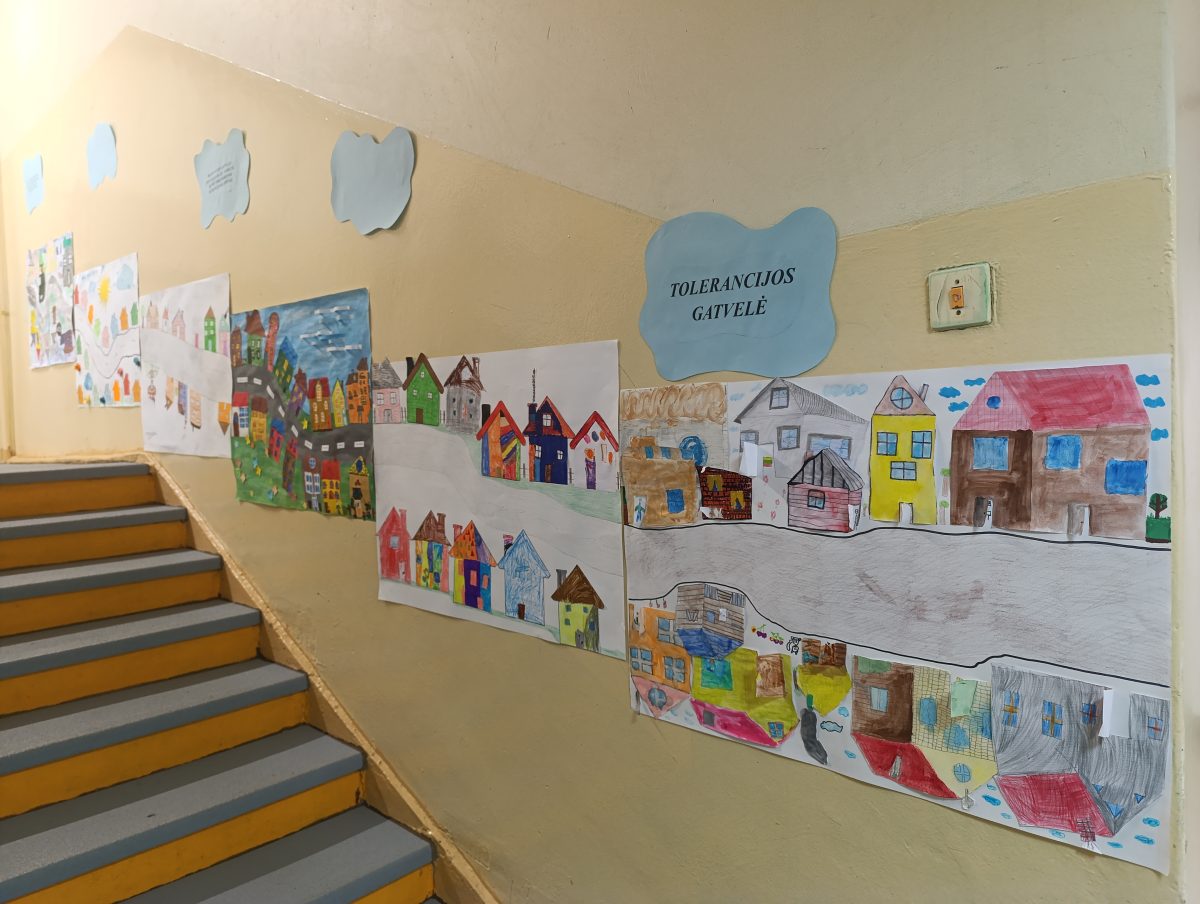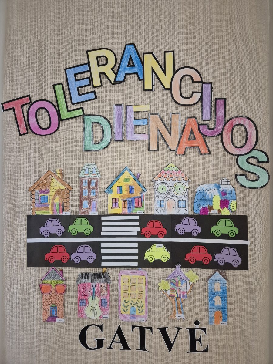 Visą savaitę gimnazijos mokiniai klasių valandėlių metu kalbėjosi, bendravo, aiškinosi apie toleranciją ir ant vatmano lapo darė savo klasės Tolerancijos gatvelės atkarpą, kurioje įsikūrė kiekvieno vaiko Tolerancijos namelis. Lapkričio 17 dieną sujungėme visas galvelių atkarpas į vieną Tolerancijos gatvelę.