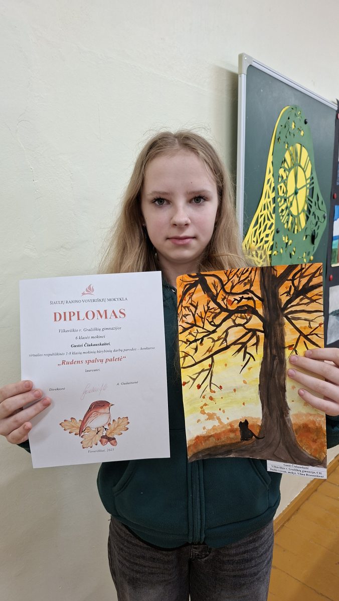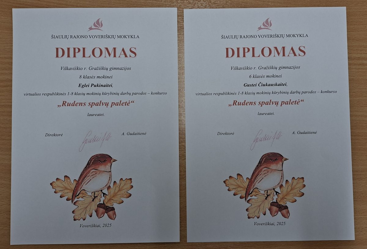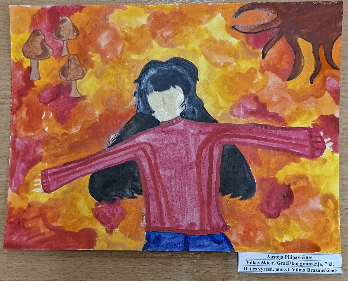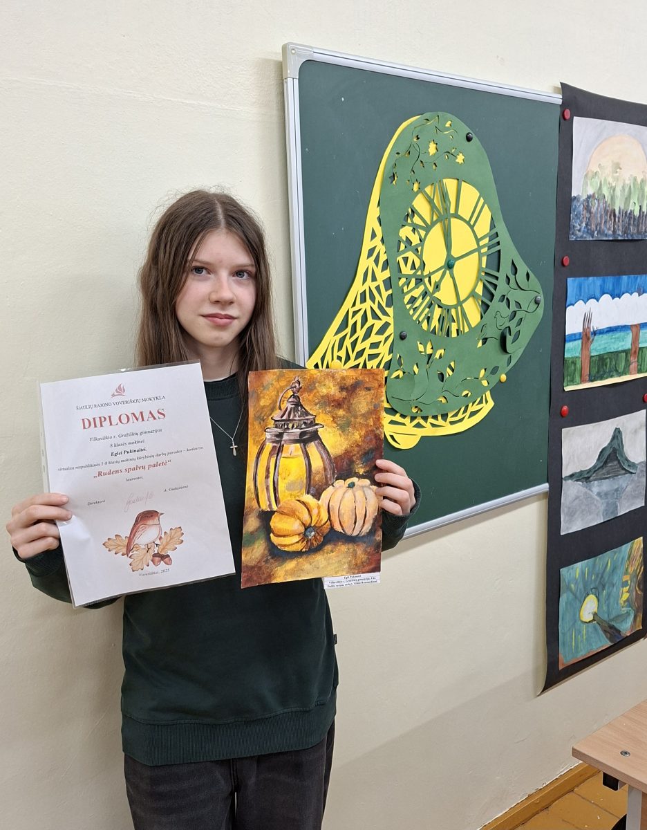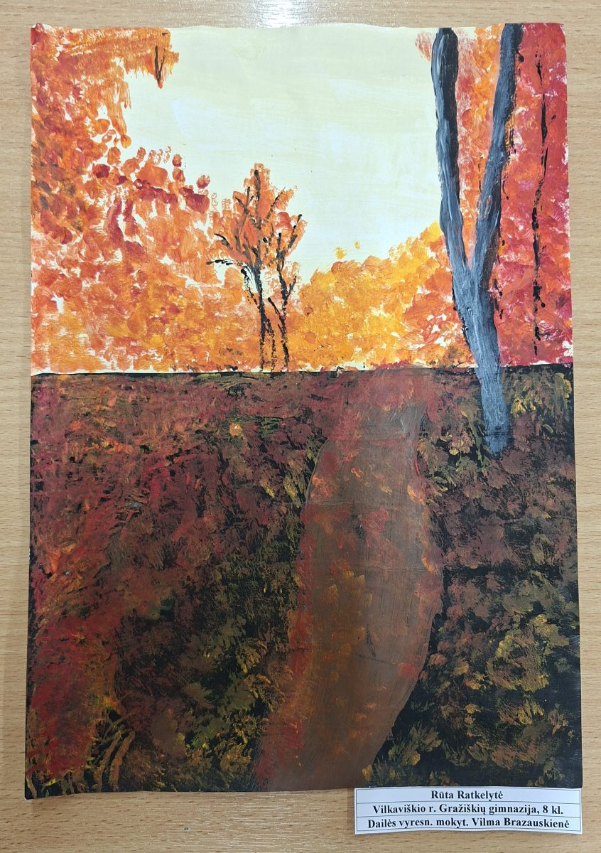 Gimnazijos mokinės dalyvavo virtualioje respublikinėje kūrybinių darbų parodoje – konkurse „Rudens spalvų paletė“. Konkurso tikslas – skatinti mokinius stebėti ir pažinti Lietuvos gamtą bei atskleisti jos rudenišką grožį bei pokyčius, skatinti kūrybiškai eksperimentuoti, taikant naujus raiškos būdus, technikas, medžiagas. Vertinimo kriterijai: idėjos originalumas, kultūra, estetiškumas, meniškumas, atskleista tema. Vertinimo komisijai teko nelengvas iššūkis – sulaukė 173 mokinių darbų iš įvairių Lietuvos miestų bei rajonų ugdymo įstaigų.