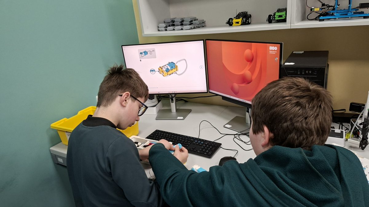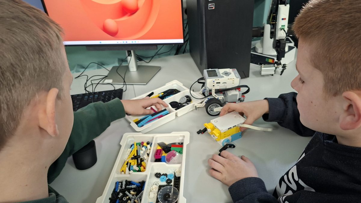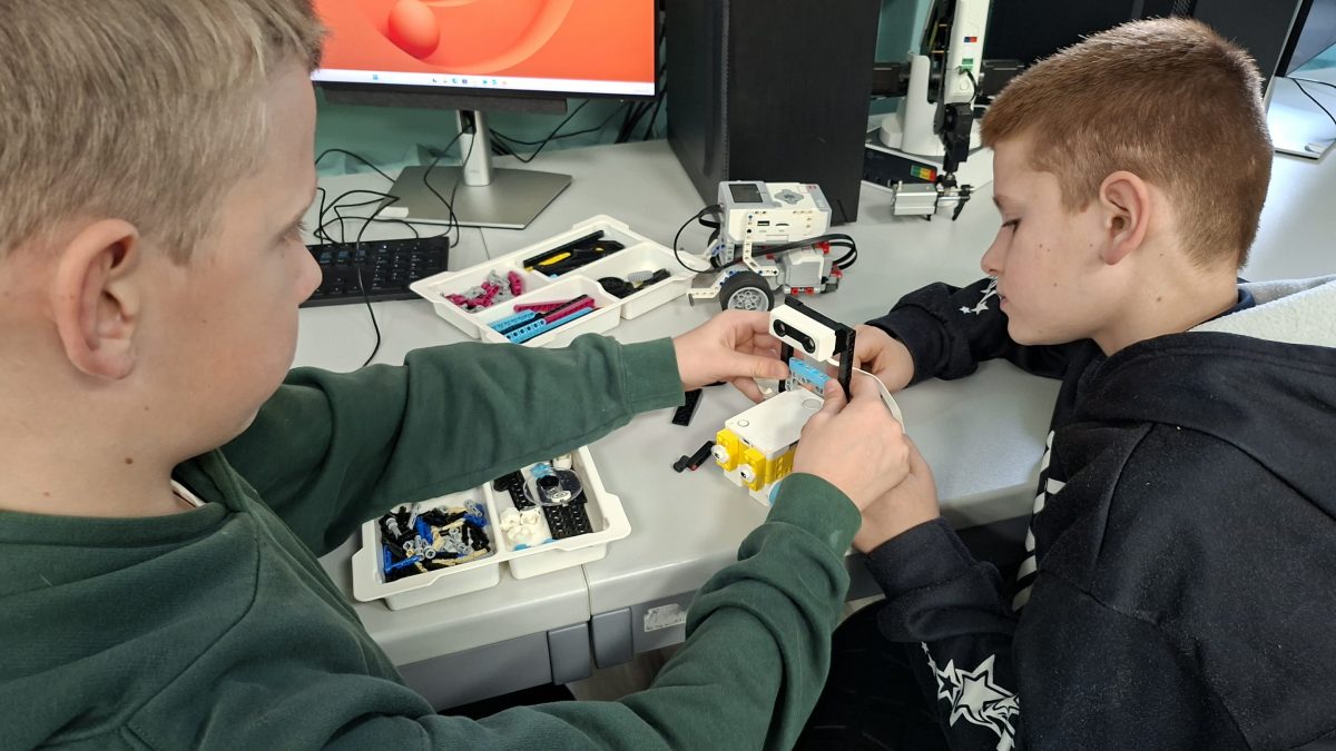 5 kl. mokiniai su muzikos ir dailės mokytoja Vilma Brazauskienedalyvavo robotikos veikloje „Kas toliausiai nušokuos?“. Jie konstravo robotus-šokliukus ir kūrė jiems programinius kodus. Vaikai praktiškai susipažino su robotų konstravimu, programavimu ir išbandė savo kūrinius smagioje užduotyje – siekė, kad robotas kuo toliau „nušoktų“.