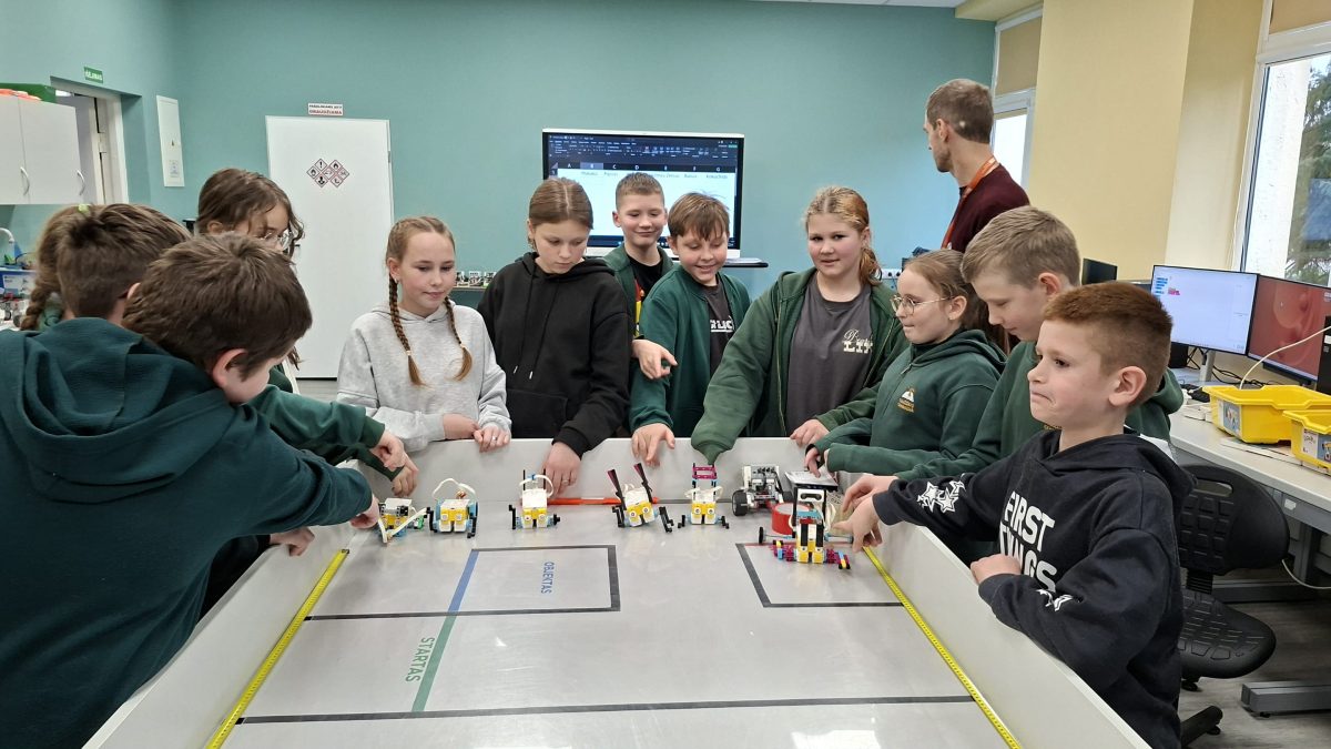 5 kl. mokiniai su muzikos ir dailės mokytoja Vilma Brazauskienedalyvavo robotikos veikloje „Kas toliausiai nušokuos?“. Jie konstravo robotus-šokliukus ir kūrė jiems programinius kodus. Vaikai praktiškai susipažino su robotų konstravimu, programavimu ir išbandė savo kūrinius smagioje užduotyje – siekė, kad robotas kuo toliau „nušoktų“.