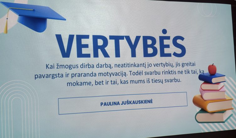 Lapkričio 20 dieną 5–10 klasių mokiniai dalyvavo karjeros ugdymo pamokoje, skirtoje vertybių pažinimui ir jų ryšiui su būsimiems karjeros sprendimais.