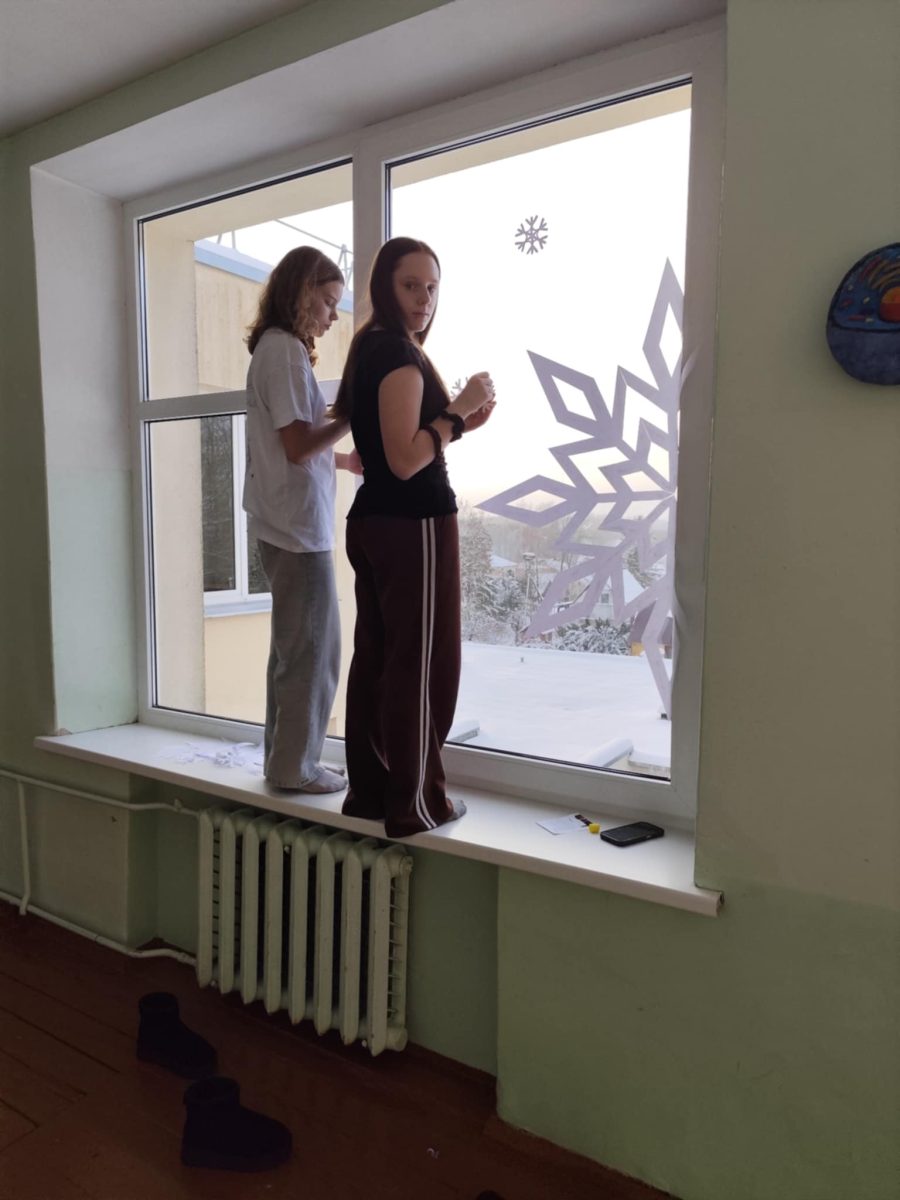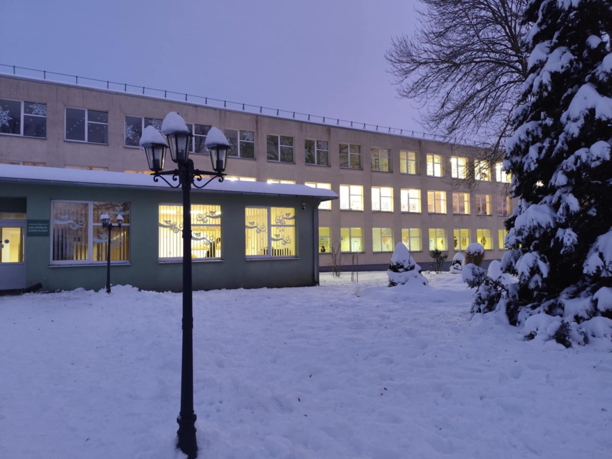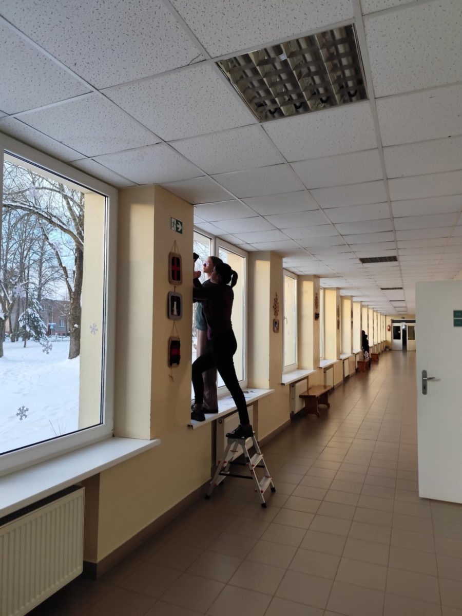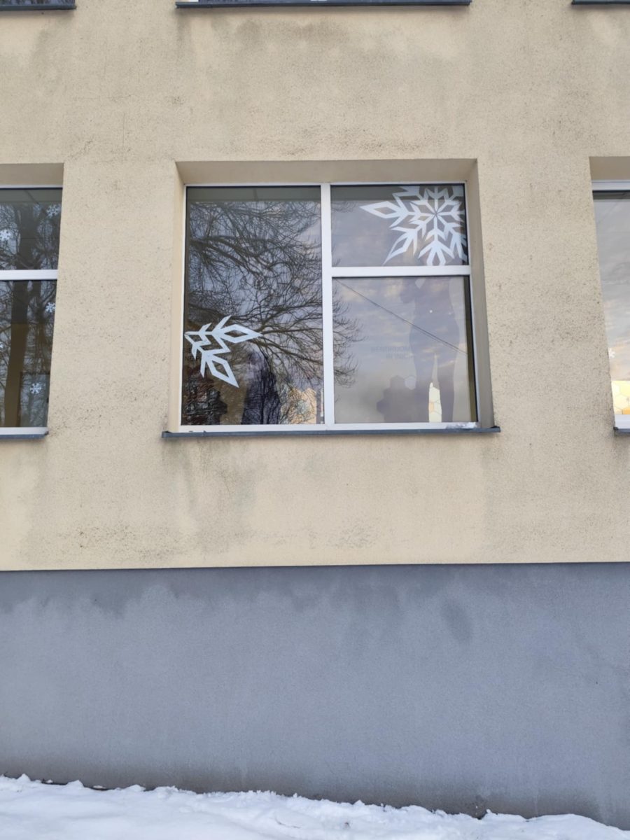 Žiema į Vilkaviškio r. Gražiškių gimnaziją atkeliavo ne tik su sniegu už lango, bet ir su jaukiais, šventiškais papuošimais pastato viduje. Šįmet gimnazijos langai padabinti baltais, subtiliais raštais, kurie primena krentančias, besisukančias snaiges ir žaisliukus, puošiančius mūsų eglutes namuose. Gimnazijos fojė puošia nuostabūs karpiniai, primenantys, kad artėja 2026-ieji.