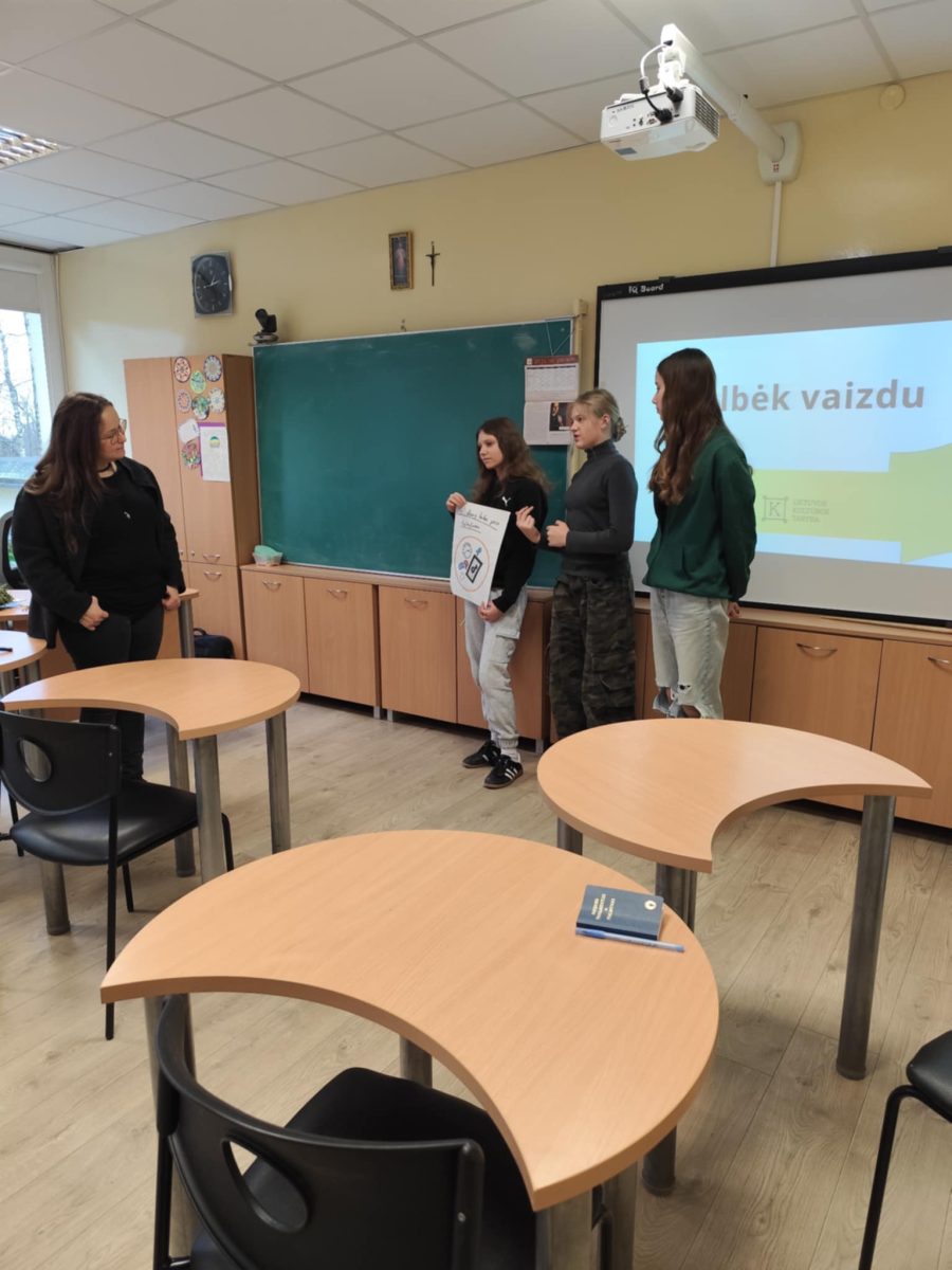 Gražiškių gimnazija, užsiregistravusi projekte „Kalbėk vaizdu“, Gruodžio 12 d. sulaukė svečio, narės iš Lietuvos dizaino asociacijos, profesionalios dizainerės ir KTU menotyros doktorantės Indrajos Raudonikytės.
