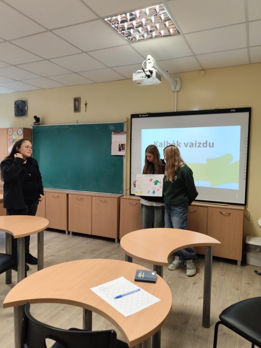 Gražiškių gimnazija, užsiregistravusi projekte „Kalbėk vaizdu“, Gruodžio 12 d. sulaukė svečio, narės iš Lietuvos dizaino asociacijos, profesionalios dizainerės ir KTU menotyros doktorantės Indrajos Raudonikytės.