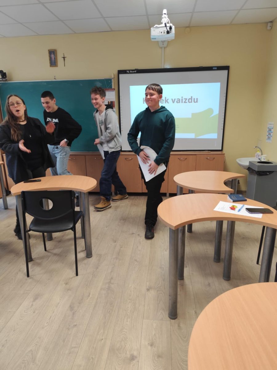 8 ir 8 B klasių mokinius dizainerė supažindino su esminiais komunikavimo vaizdu principais, kuriuos naudoja profesionalai, norėdami mus įtikinti ką nors nusipirkti, kuo nors patikėti, ką nors suprasti.