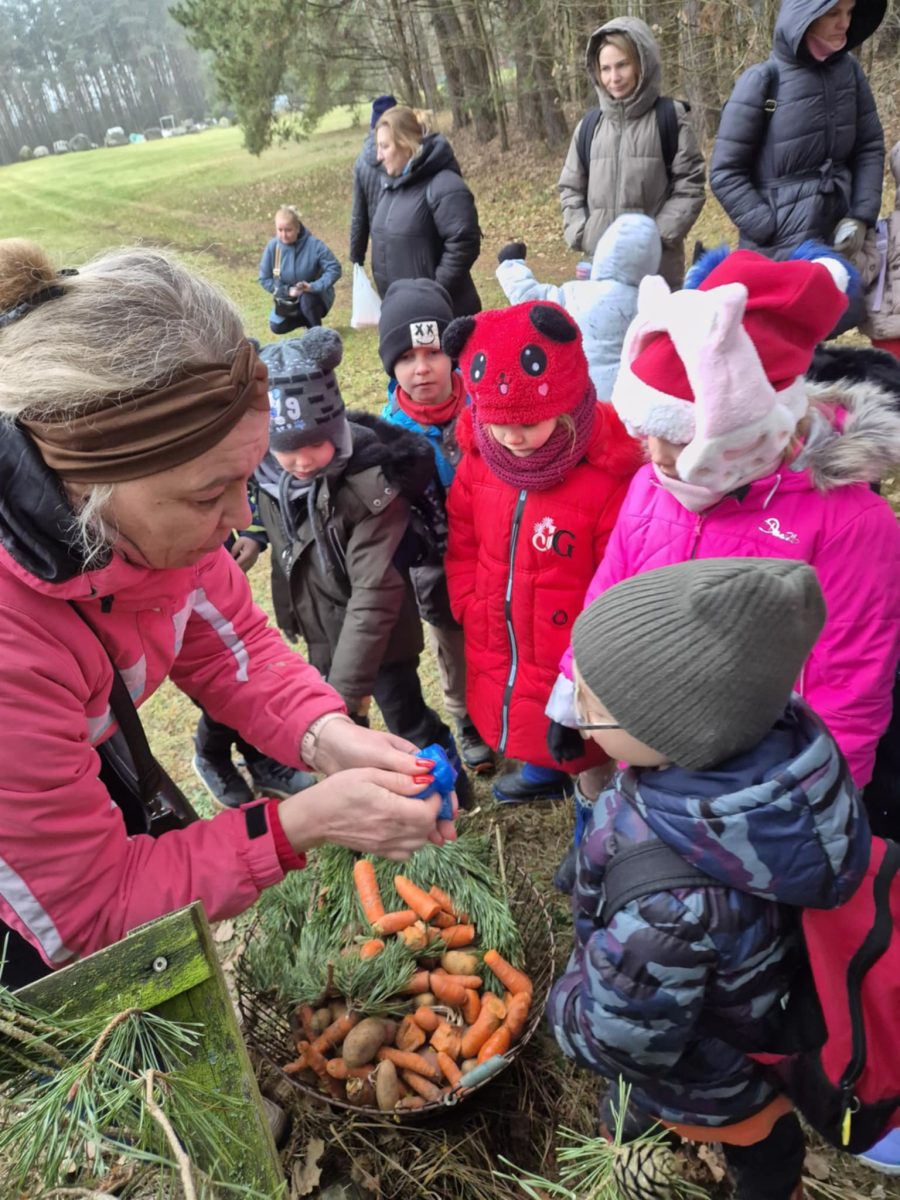 Žygio metu mažieji tyrinėtojai atidžiai stebėjo aplinką, ieškojo gyvūnų pėdsakų ir su dideliu susidomėjimu spėliojo, kam jie galėtų priklausyti. Vaikai nuoširdžiai tikėjo, kad miške gali sutikti jo gyventojus, todėl kiekvienas garsas ar šešėlis kėlė džiugų jaudulį. Su rūpesčiu ir gerumu širdyse jie pasirūpino miško gyvūnais – į ėdžias sudėjo atsineštas gėrybes: morkas, kopūstus ir medžių šakeles.