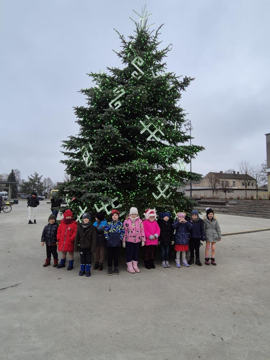 Grįždami į gimnaziją, priešmokyklinukai dar sustojo aplankyti Kalvarijos miesto eglutės, pasigrožėjo jos spindesiu ir pajuto tikrą šventinę dvasią. Ši diena ilgam išliks atmintyje – visi grįžo laimingi, kupini įspūdžių, šilumos ir džiaugsmo. Priešmokyklinukų žygis Kankorėžių miške tapo tikra žiemos pasaka, kupina nuotykių, atradimų ir šventinės nuotaikos.