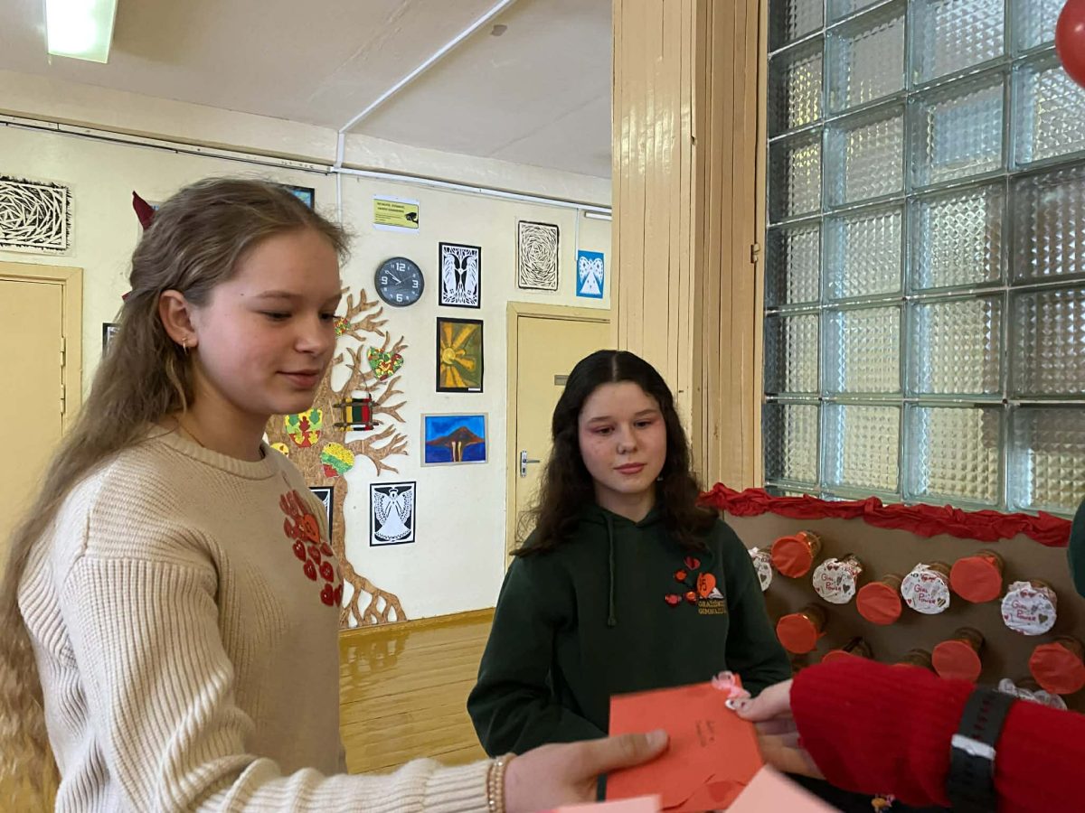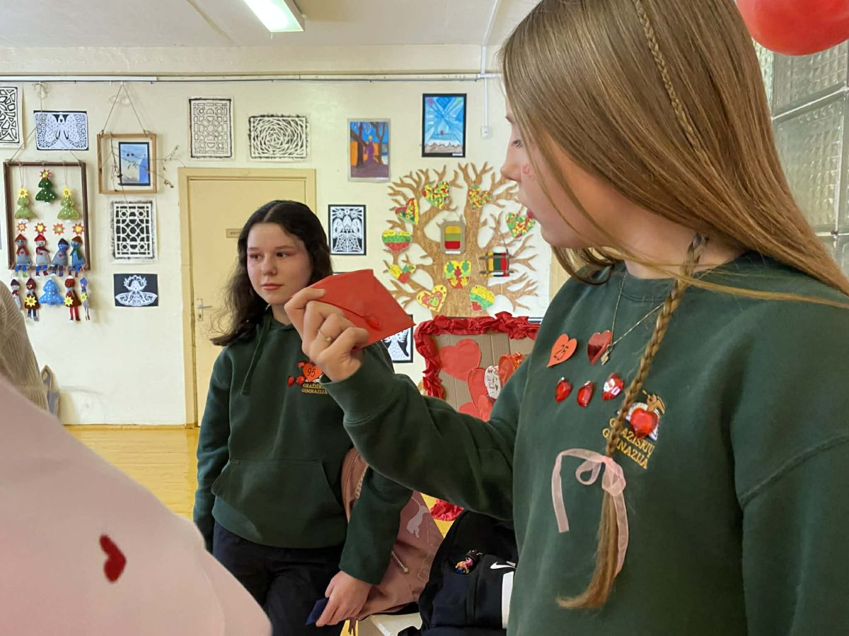 Šią dieną ne vieną gimnazijos bendruomenės narį pradžiugino ir Šv. Valentino paštas. Linksmi, nuoširdūs palinkėjimai, slapti prisipažinimai bei šilti žodžiai pakėlė nuotaiką ir ne vieno širdyje privertė suplazdėti drugelius.