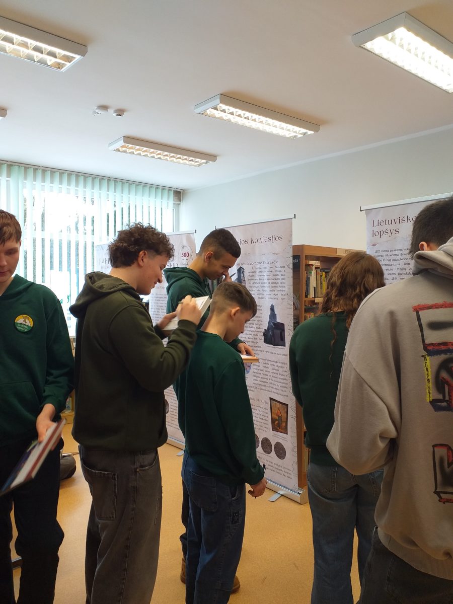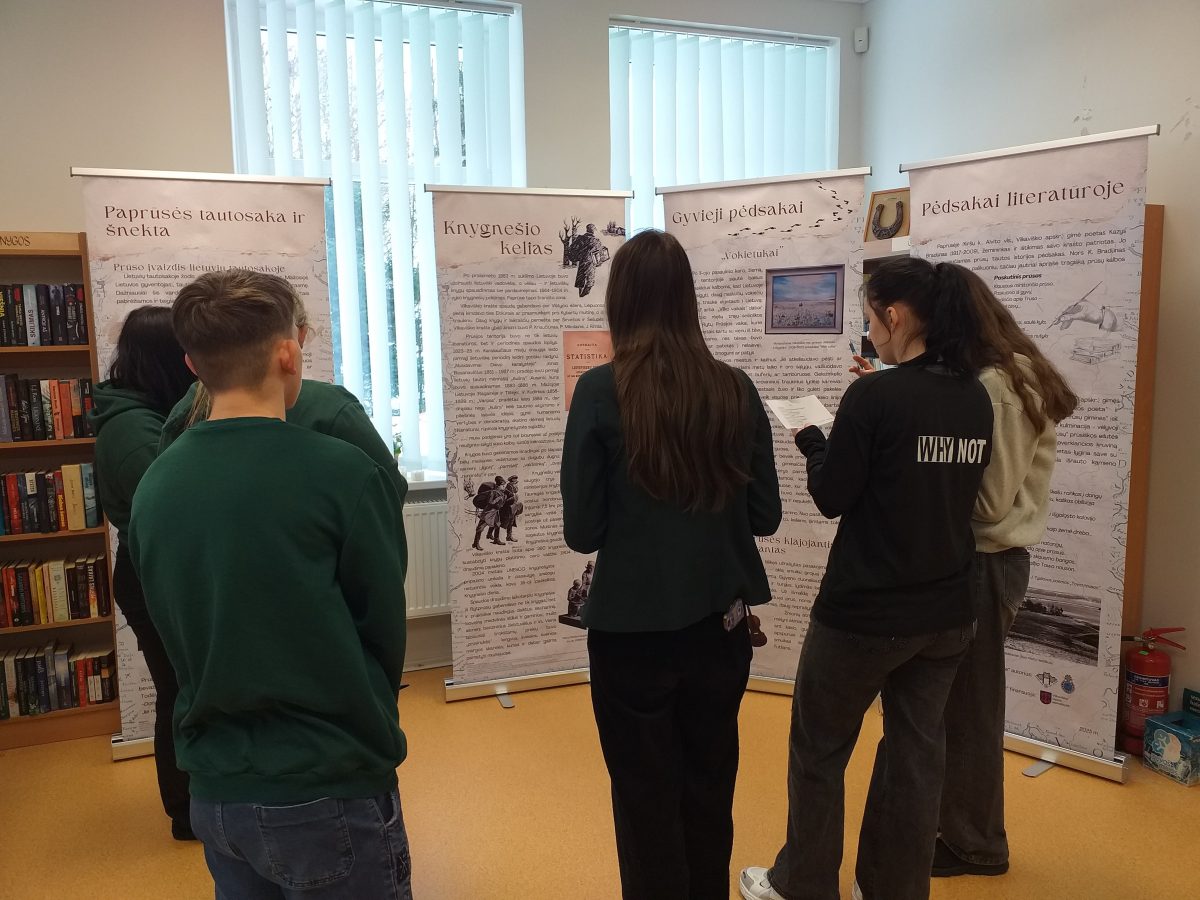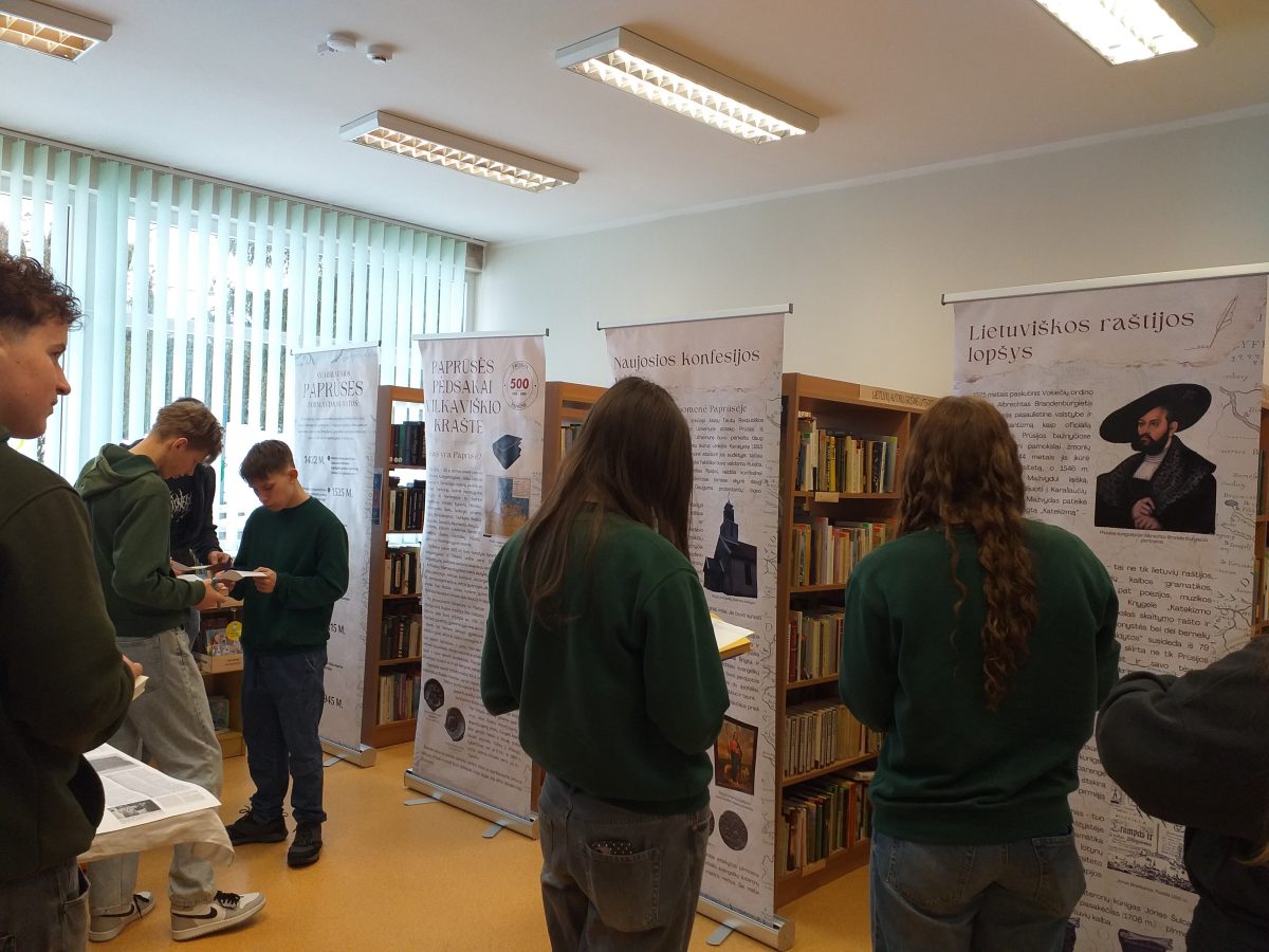 Vasario 24 d. Gražiškių miestelio bibliotekoje II gimn. klasės mokiniams vyko netradicinė lietuvių kalbos ir literatūros pamoka tema „Paprūsės pėdsakai Vilkaviškio rajone“. 2025-uosius metus Vilkaviškio rajono savivaldybė paskelbė Paprūsės metais – buvo minimas 500-asis Paprūsės jubiliejus. Paprūsės nėra Lietuvos regionų žemėlapyje, bet jos paliktų pėdsakų gausu istorinėje atmintyje, kultūriniame ir kulinariniame pavelde. Mokiniai susipažino su kilnojamąja paroda „Paprūsės pėdsakai Vilkaviškio rajone“ . Jie sužinojo, kas yra Paprūsė, gilinosi į stendų medžiagą, ieškojo informacijos apie to meto religiją, lietuviškos raštijos ženklus, knygnešių kelius, Paprūsės krašto žymiausius poetus, šnektos ypatumus. Dalis mokinių pirmą kartą išgirdo sąvoką „Vilko vaikai“ ir atidžiai skaitė informaciją apie šiuos vaikus.