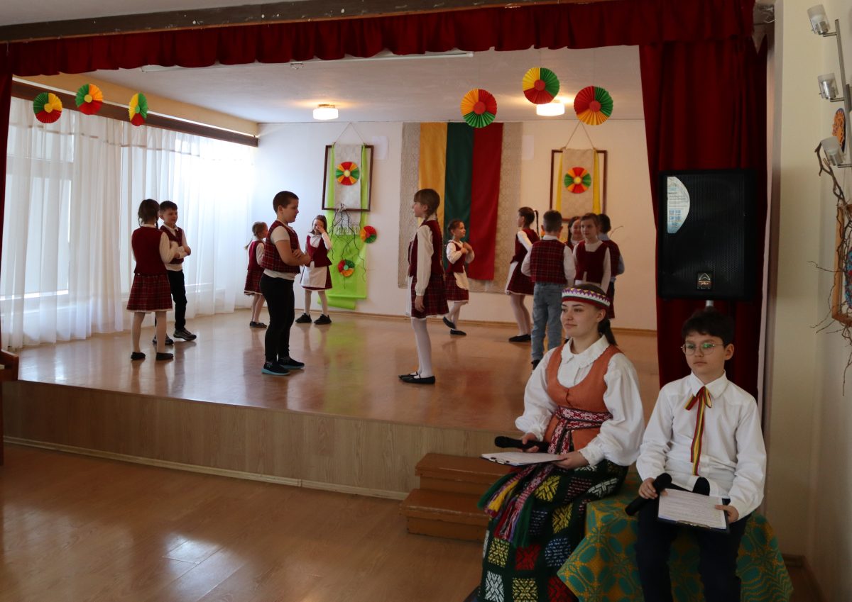 Šventę pradėjome iškilmingai giedodami „Tautišką giesmę“, o vėliau, lydimi smalsių vedėjų, leidomės į kelionę per svarbiausius mūsų šalies istorijos etapus. Scenoje susipynė tradicijos ir šiuolaikiškas džiaugsmas: stebėjome tautinius šokius, klausėmės jautrių pianino garsų, eilėraščių bei dūdelių ansamblio pasirodymo.