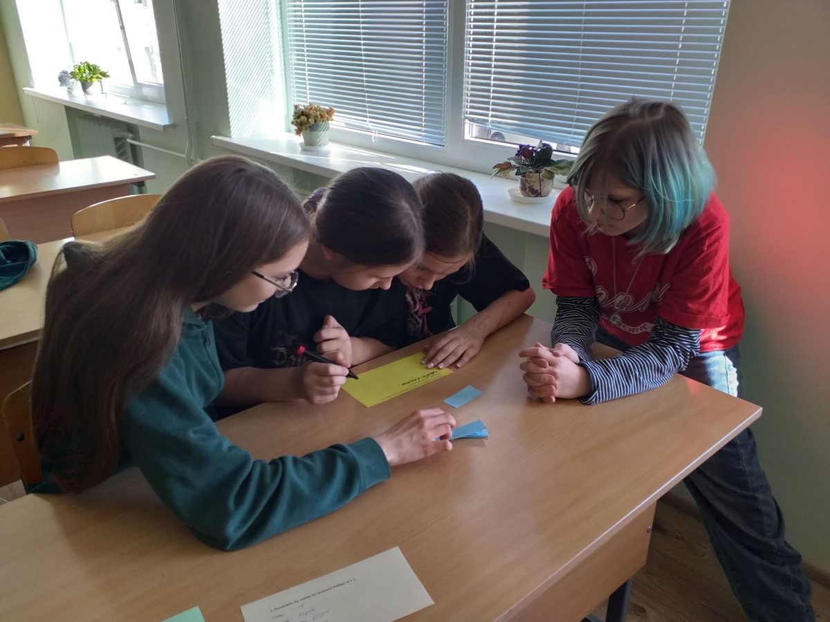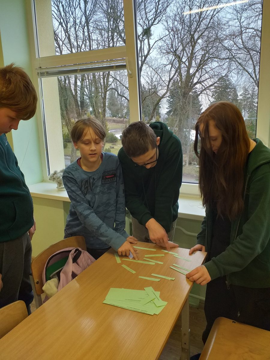 6 ir 7 klasių mokiniai Kalbos žaidimų stotelėse atliko įvairias kalbines užduotis: atrinko patarlių pabaigas, aiškino frazeologizmus, tarminius žodžius, patys kūrė naujadarus. Tai buvo puiki galimybė pajusti lietuvių kalbos turtingumą ir galimybes ją toliau turtinti.