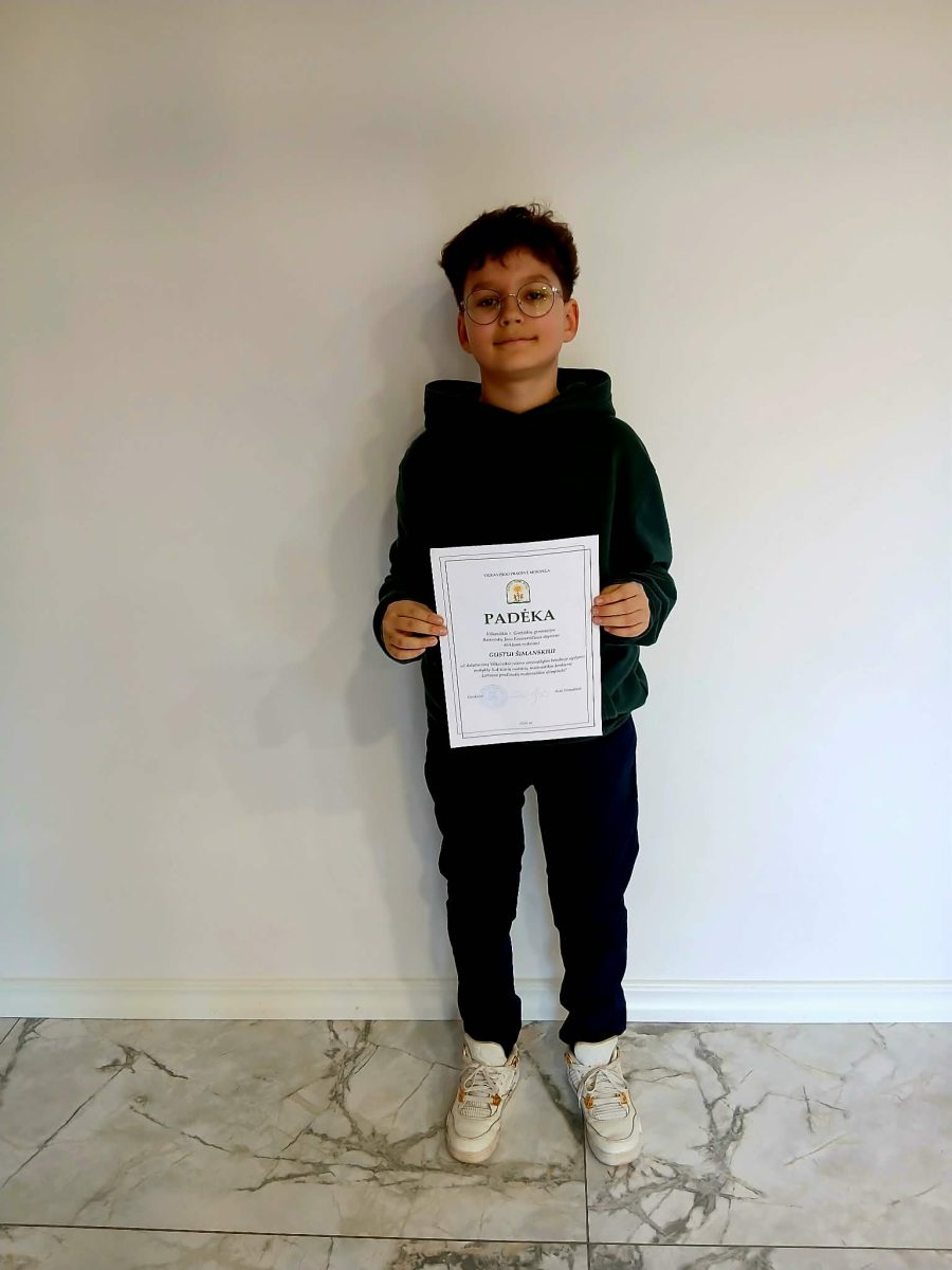 Gustui Šimanskiui pavyko pasiekti puikų rezultatą – jis iškovojo pirmąją vietą. Tai reikšmingas pasiekimas, atspindintis ne tik mokinio gebėjimus, bet ir jo atkaklų darbą, pastangas bei susidomėjimą matematika. Toks įvertinimas džiugina visą mokyklos bendruomenę ir įkvepia siekti dar aukštesnių tikslų.