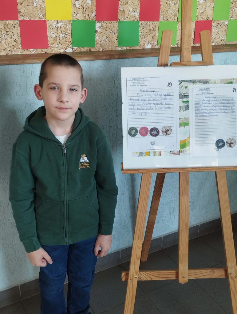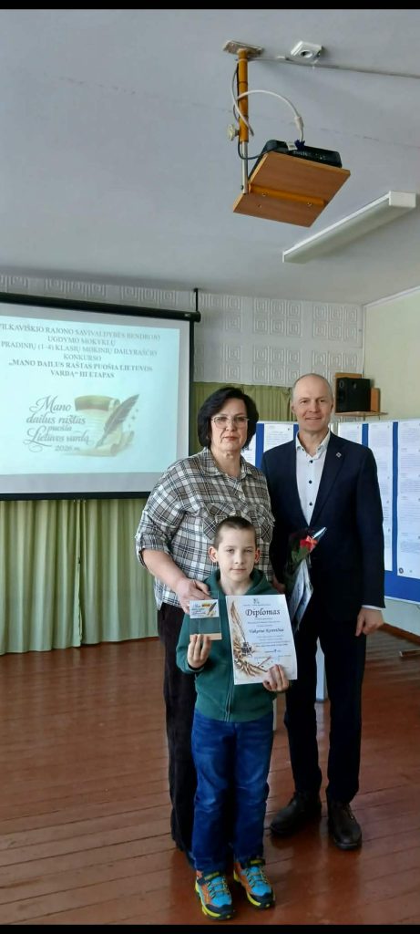 Mūsų mokyklos pradinukai dalyvavo Vilkaviškio rajono savivaldybės bendrojo ugdymo mokyklų 1–4 klasių mokinių dailyraščio konkurse „Mano dailus raštas puošia Lietuvos vardą“, kurį organizavo Virbalio pagrindinė mokykla. Šiam konkursui buvo išsiųsti Vakario Kerevičiaus (1 kl.), Matėjaus Damidavičiaus (2 kl.), Ugnės Petkevičiūtės (3 kl.) ir Gabrieliaus Popov ( 4 kl.) rašto darbai. Pirmokas Vakaris Kerevičius laimėjo rajone III vietą pirmokų grupėje ir savo darbu pagarsino mokyklos vardą. Džiaugiamės mokinių gražiu raštu ir linkime toliau jį puoselėti. Mokinius konkursui ruošė mokytojos R. Jankaitienė, L.Dumčiuvinė, L. Kelnerienė.