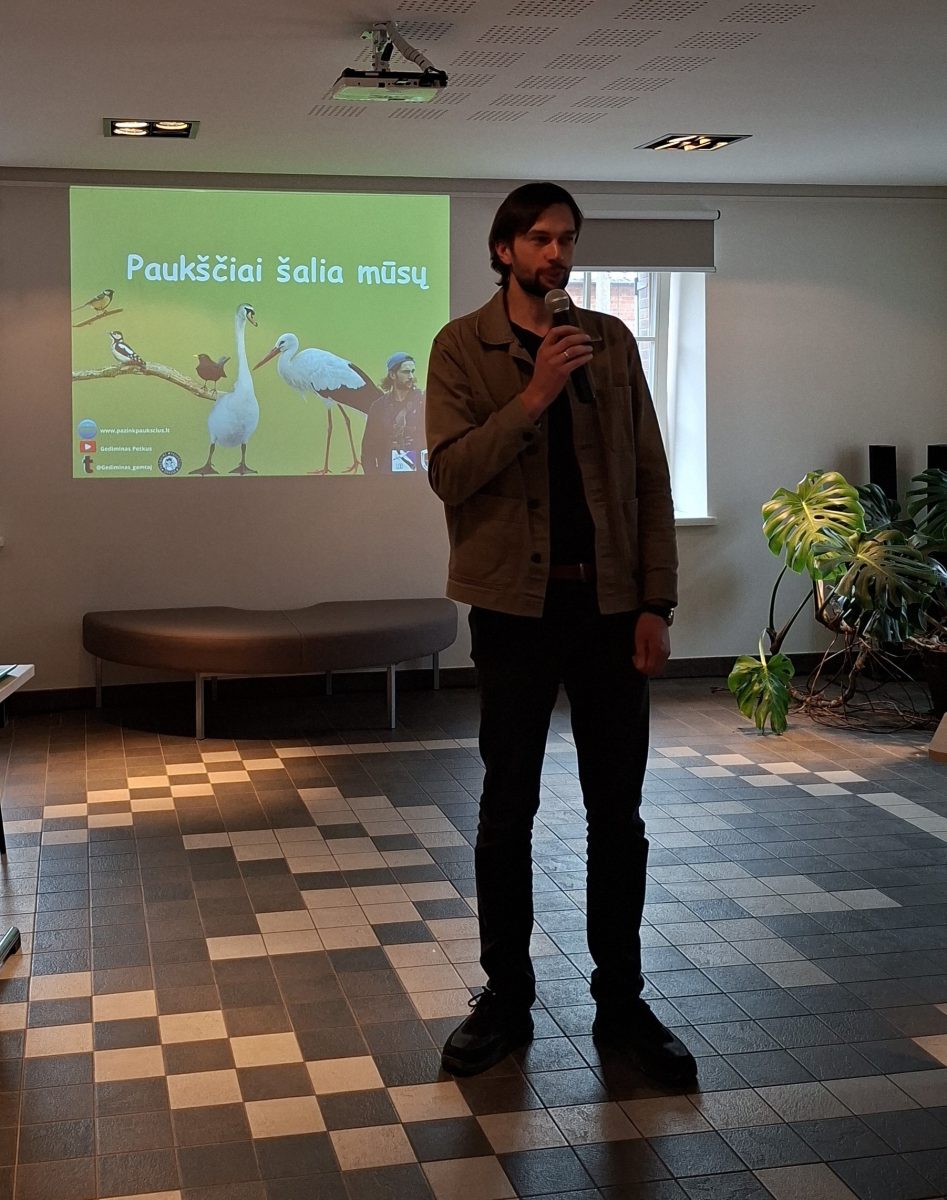 Po konkurso pertraukėlės dalyvių laukė siurprizas – susitikimas su ornitologu Gediminu Petkumi. Konkurso dalyviai tarsi hipnozės seanse klausėsi įdomių pasakojimų apie paslaptingą paukščių gyvenimą.
